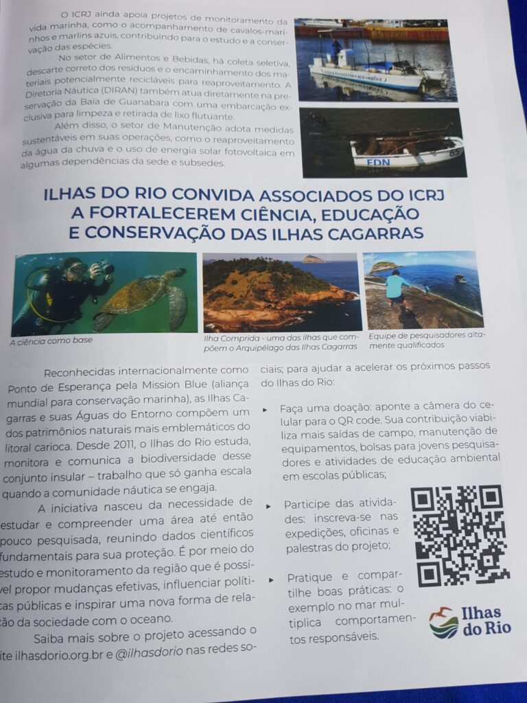 O primeiro fruto dessa parceria já pode ser conferido pelos membros do ICRJ. Recentemente, a revista mensal do Clube dedicou uma matéria especial ao trabalho do Ilhas do Rio, apresentando nossas iniciativas de pesquisa, ciência cidadã e advocacy em prol da biodiversidade marinha carioca.