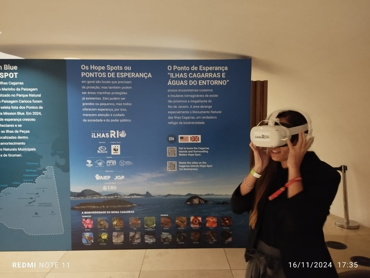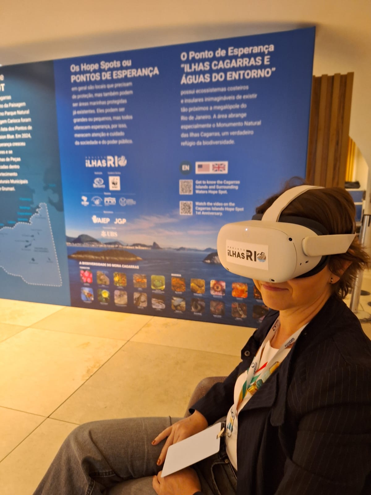 No Museu do Amanhã, o Projeto Ilhas do Rio ofereceu a oportunidade aos participantes do Oceans 20 Summit para uma experiência em realidade virtual com o objetivo de conectá-los à biodiversidade do Hope Spot. Os usuários dos óculos de realidade virtual puderam “mergulhar” com pesquisadores ao assistirem ao vídeo “Um mergulho na Esperança – Ilhas Cagarras e Águas do Entorno”.